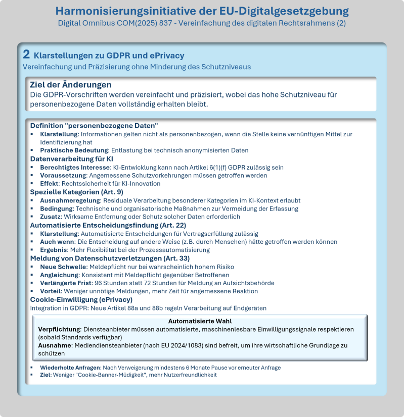 Der Zugang zum EU-Recht, (EU) 2018/1724, (EU) 2018/1725, (EU) 2023/2854 und der Richtlinien 2002/58/EG, (EU) 2022/2555 und (EU) 2022/2557 hinsichtlich der Vereinfachung des Rechtsrahmens für den digitalen Bereich sowie zur Aufhebung der Verordnungen (EU) 2018/1807, (EU) 2019/1150, (EU) 2022/868 und der Richtlinie (EU) 2019/1024 (Digital Omnibus)